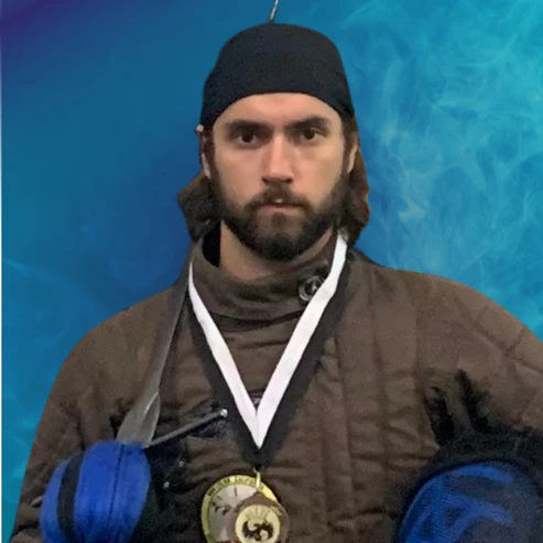 I started fencing in 2018, beginning with longsword and eventually picking up rapier and messer in 2021. I have since medaled in 6 different weapon sets. I am very passionate about competition, and I want to push boundaries in HEMA and see skill level rise to even greater heights. Excluding fencing, I have over a decade of high level sports experience between baseball and wrestling, and I enjoy bringing many aspects of what I’ve learned, from competition mindset, to coaching tactics or drill-crafting, into my overall fencing paradigm.